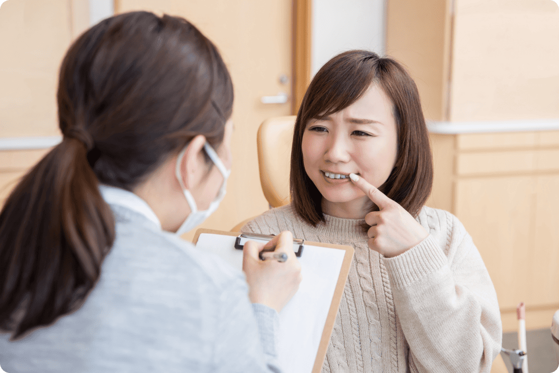 お口のことでのお困りごとや違和感、遠慮なく何でもお伝えください。